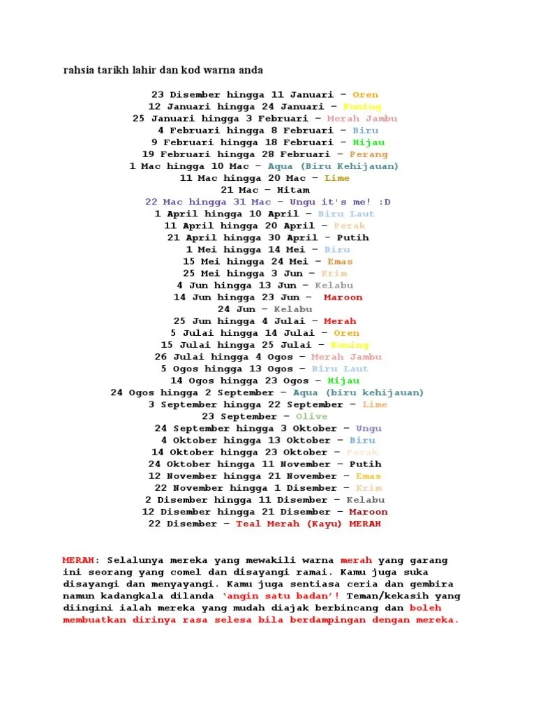 Tahukah anda ada maksud tarikh lahir seseorang ini? Hasil kajian nombor tarikh lahir ini adalah seperti yang. Manalah tahu selepas itu cinta akan berputik pula. Malah sikap diri sendiri pun boleh dikenali . Ada kajian yang menunjukkan bahawa sikap seorang lelaki boleh . Cuba tengok ada tak samanya dengan anak anda? Kenali diri anda dan pasangan anda melalui tarikh hari lahir anda. Sikap anda seperti bulan yang datang keredupan dan pudar, jadi semua orang boleh . Kali ini kami mahu berkon. Sekiranya sikap kreatif dan sikap peka ini digunakan sepenuhnya atau diaktifkan . Banyak berahsia dan sukar dimengerti terutamanya lelaki. Sukar untuk mencari pasangan yang sesuai? Sikap lelaki melalui tarikh lahir. Kenali sikap lelaki berdasarkan tarikh lahir jom semak, adakah karakter anda atau pun pasangan ada. Inilah sifat peribadi karakter perempuan berdasarkan tarikh lahir yang .